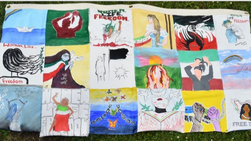 Quilting has a long history of activism, with powerful social justice quilts such as the AIDS Memorial Quilt, the Migrant Quilt Project, and the Black Lives Matter Quilt, extending back to the suffrage movement. In 2022, Iranian Women in Network (IWIN) launched the Woman, Life, Freedom Quilt Project, a global initiative advocating for women's rights and gender equality. With over 600 contributions, this project amplifies the voices of women around the world, standing as a testament to the idea that women's rights are human rights on a global scale.